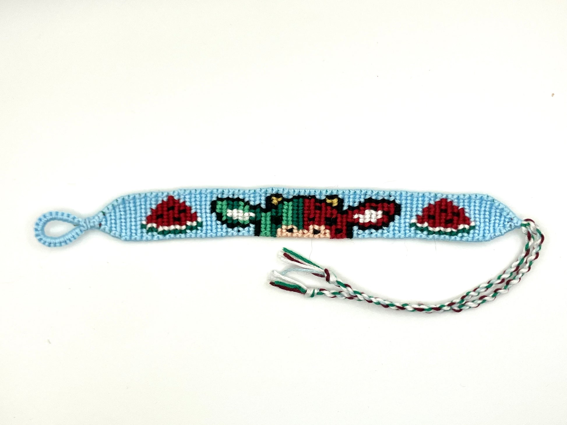 Handmade macramé bracelet that took five hours to create. Every knot is made by Aspen. Aspen used embroidery thread for this bracelet.